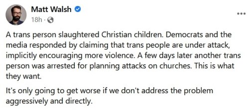 In stark contrast, three Democrat state lawmakers responded to the tragedy by holding a rowdy 10-hour, bull-horn led, anti-gun protest on the floor of the statehouse. During the near-riot, they held up seven fingers, indicating they included the suicidal trans shooter among the victims.