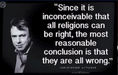 ATHEISM: According to Hitchens’ alleged logic, the fact that there are an infinite number of wrong answers for 2 + 2 = x means there are no right answers. The fact is that there is one and only one correct answer.