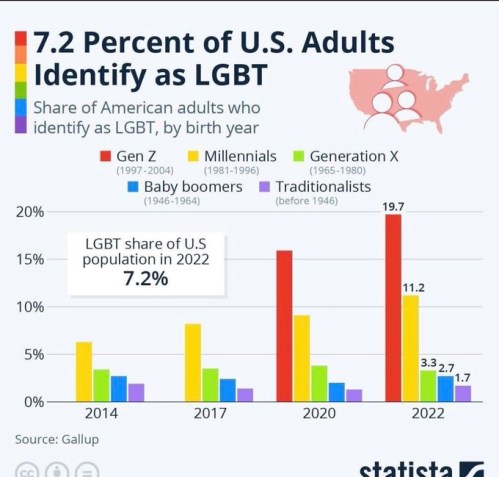GEN Z: Former trannie Oli London asked, “What do you think is behind the huge leap in Gen Z identifying as LGBTQI+?” Responses largely focused on “social contagion” and the “cool kids” factor … “peer and social pressures (internalized and otherwise), cheap cred, and a whole heaping helping of feeling cool without any effort whatsoever.” Other frequent mentions included TikTok, schools, liberal media, and my personal favorite, Satan.