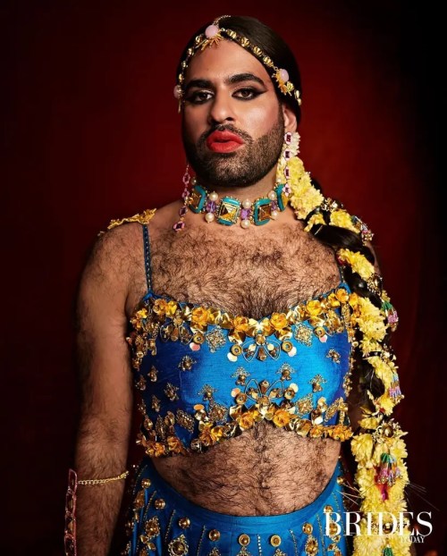 S&G: Indian trans activist, Alok Vaid-Menon, is the new face of bridal wear in India. So far, he has appeared in 3 digital covers for a women’s bridal magazine. In a 2016 Facebook post, in response to bans on men using girls restrooms, he posted, “Little girls are also kinky. Your kids aren’t as straight and narrow as you think.”