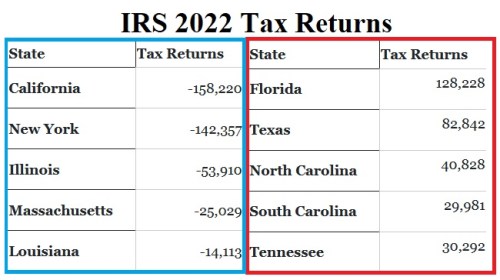 IRS: People continue the national migration from blue to red states.