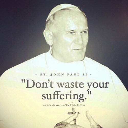“So when we attach our sufferings to His when we offer our sufferings to his; when we accept our own sufferings in faith, it can become a great source of grace and redemption for ourselves and for others.