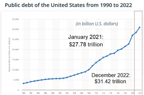 FAUXTUS: CLICK https://rumble.com/v2mo9kg-biden-falsely-claims-he-cut-the-national-debt-by-1.7-trillion.html (:10) to hear Delusional Joe claim that, during his first two years in office, he cut the national debt by $1.7 trillion. In reality, the national debt grew by $3.64 trillion.