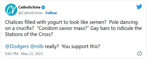“This is a slap in the face of every Catholic. We’re raising $1 million as fast as we can, and we will pummel this decision in advertising that the Dodgers can’t ignore.” CLICK https://www.donate.catholicvote.org/anti-catholic-dodgers if you want to donate to the Catholic Vote ad campaign.