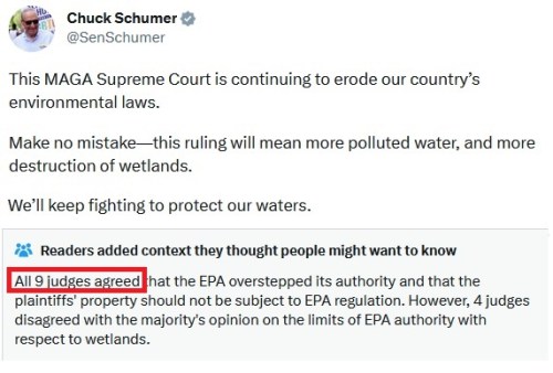 SCOTUS: The Supreme Court unanimously ruled to restrain the federal bureaucracy’s regulation of the “Waters of the United States” (WOTUS) under the Clean Water Act.