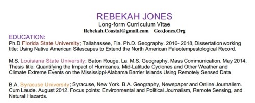 Both her 2012 Bachelor’s and 2014 Master’s degrees were in geography. She doesn’t have a medical degree of any kind; she doesn’t even have a Ph.D. in her field of geography. As for her work record … yoiks! Her first job at Louisiana State University ended in 2016 when she was fired after trespassing, attempting to steal computer equipment, resisting arrest, and hitting an officer.