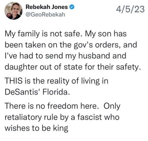 - https://hotair.com/david-strom/2023/04/06/rebekah-jones-claims-desantis-kidnapped-her-son-n542213