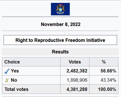 In 2022, 57% of Michigan voters approved a proposal to add abortion and contraceptive use to the Michigan Constitution. The amendment makes it unconstitutional for the state to enact any laws to restrict abortion, including those that would protect the health and safety of the women who seek abortion.