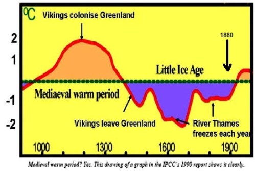 While it is true that we don’t have accurate surface temperature records from long ago, it is also true that various physical (e.g., tree rings) and historical records (e.g., agricultural, trade and population data) allow us to roughly estimate climate conditions. And these sources show that the Earth was both markedly warmer and markedly colder than it is now: