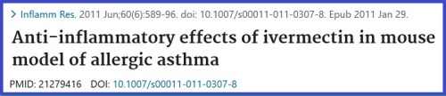 In June 2011, a paper entitled “Anti-inflammatory effects of ivermectin in mouse model of allergic asthma” demonstrated that ivermectin may be “an effective suppressor of inflammation and may be efficacious in the treatment of non-infectious airway inflammatory diseases such as allergic asthma.”