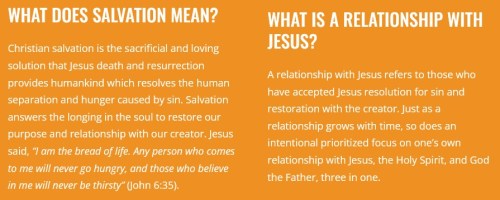 I could find zero mention of the need for repentance, confession, or conversion in the church’s statements of belief. “We believe that faith alone in Jesus Christ as Savior and Lord frees us from sin, and its consequences of death and eternal separation.” However, there is repeated emphasis on working out your own salvation by participating in a specific church. While I don’t disagree with that … I too believe we are called to actively participate in a specific faith community, this church’s emphasis combined with the pressure to tithe is very problematic. E.g., a former member reports, “They call it a free will gift or free will giving, that simply isn’t true. You’re brainwashed into giving this kind of money. There were nights in our house when my children did not have food. And I never got any assistance whatsoever from anybody.”
