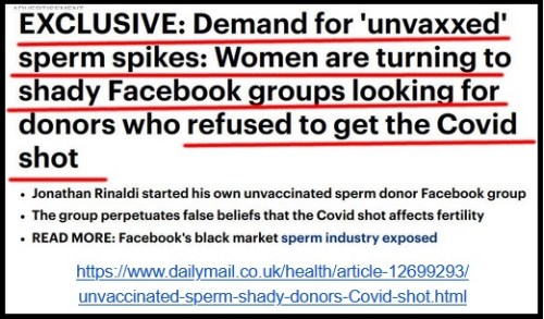 UNVAXXXED: The Daily Mail reports there has been an uptick in women seeking sperm donations from men who claim to have not gotten the ‘rona jab. The CDC claims there is zero evidence that the shots affect fertility. The post-jab drops in birth rates suggest otherwise.