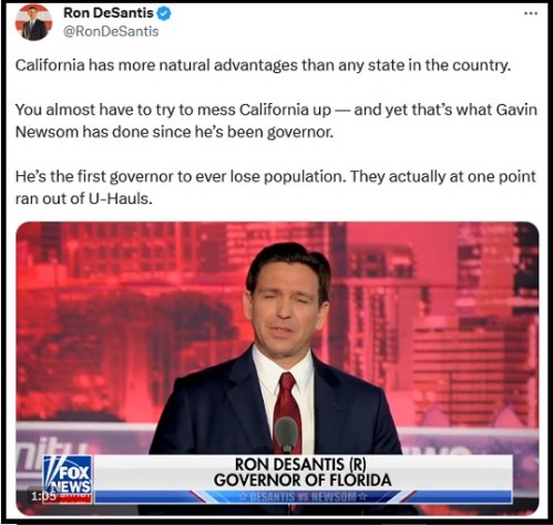 DeSANTIS vs. NEWSOM: Last night, Gov. Ron DeSantis, R-FL, and Gov. Gavin Newsom, D-CA, squared off in a debate. CLICK https://twitter.com/ClayTravis/status/1730410547286348133 [1:06] to see Gavin get absolutely owned. CLICK https://notthebee.com/article/ron-desantis-absolutely-embarrassed-gavin-newsom-in-debate-last-night-and-weve-got-the-highlights to see more highlights.