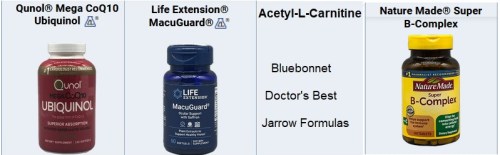 Consumer Lab’s Top Picks (quality, bio-availability, price) are shown in the graphic above. N.b., there was no Top Pick for the recommended version of carnitine; the brands listed all passed Consumer Lab’s quality tests. A B complex is recommended for folate because all the B vitamins are important; Nature Made’s product has a good amount of each while not exceeding Upper Tolerable Limits of any.