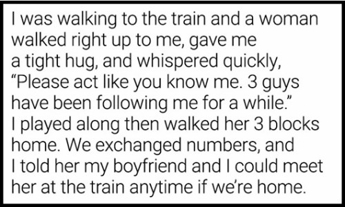 GRAMMY NOTES: I was walking on a city sidewalk one day when I heard footsteps rapidly approaching me from behind. Guys might not understand that this kind of thing makes ladies very nervous. I was so relieved when a female (of course) voice called out, “You’re safe. I’m just late.” She breezed past a moment later as I hollered thanks.