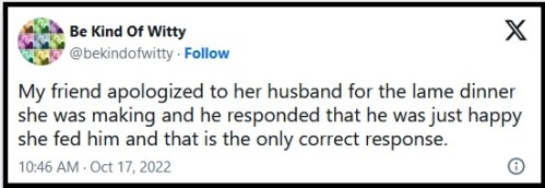 GRAMMY NOTES: The other day, I told Dearest I was pretty whipped and would he mind if we just had frozen pizza for dinner. He replied, “Whatever you make, I’m there for it.” This may be one reason we are celebrating the 45th anniversary of our first date soon. 🙂