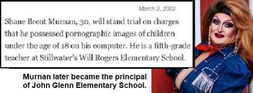 OKLAHOMA: In 2001, police arrested Murnan for having child pornography on his computer. The charges were dismissed in 2002, because they couldn’t prove he’d obtained the pictures deliberately or that the individuals were minors. Although the incident cost him his teaching job, he somehow managed to become an elementary school principal. When news of his past arrest and the fact that he performs in drag came to light, the community put pressure on the school board to oust him. They said no. But some good people kept up enough pressure that Murnan himself has decided to resign.