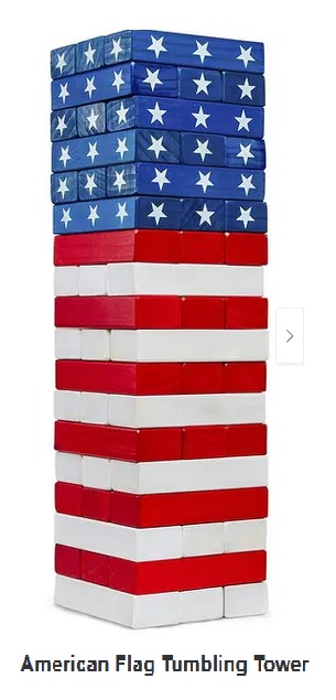BAD DESIGN: This is an actual product … and one that should never have made it past the marketing department’s first draft. It’s basically Jenga, but with “54 hand-painted wooden pieces that you can arrange into a variety of patriotic designs as you stack the blocks.” It stacks up to four feet tall and is allegedly “The perfect game to spice up your carnivals, parties, BBQs, and more” … unless, of course, anybody who was alive on 9/11 is present.