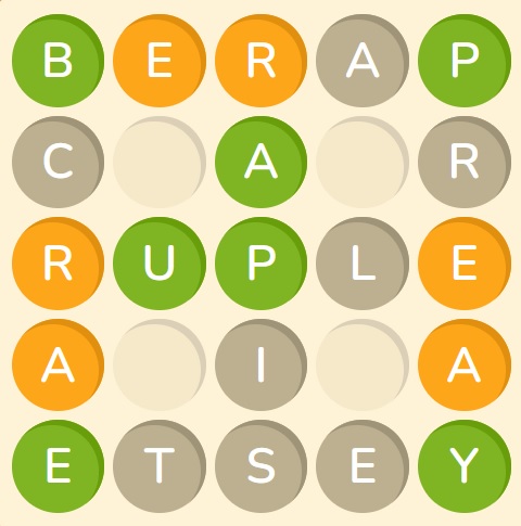 WORDWAFFLE: I enjoy this game. It forces me to think outside the box … which frequently includes words (e.g., RUPLE) that are not in the solution.