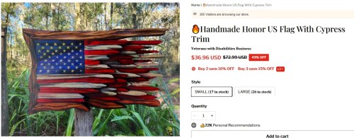 Doing a Google Image Search of the flag photo revealed it was stolen from a retired Floridian’s wood shop. He is sold out of that particular model, but when he had it, he rightfully got $265.00 for it.