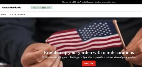- Fake Facebook ad links to fake sales site @ https://www.spttk.com/products/honor-us-flag-with-cypress-trim