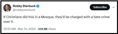 PROTESTING FOR CLICKS: CLICK https://twitter.com/CollinRugg/status/1774435274979987794 [2:09] to see pro-Palestinian protesters disrupt Easter Vigil Mass at St. Patrick’s Cathedral in New York City. As some chanted “Free, free Palestine”, others rushed to the front and held up a banner that read, “SILENCE = DEATH.” The protesters were quickly tossed out and the service continued.