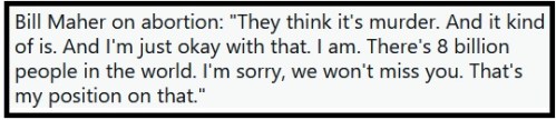 ABORTION: Pro-aborts used to pretend it was all about their compassionate concern for the suffering of women in unplanned pregnancies (“safe, legal, and rare”). Then, they moved on to cheering for women who had the guts to choose themselves over their offspring (“shout your abortion”). Now they’re finally telling the truth, which is simply “We don’t want you.”