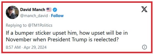 FLORIDA: CLICK https://twitter.com/TM1Politics/status/1784927352218136893 [3:15] to see what happened to a NYC snow bird who keyed someone’s truck, because the “Let’s Go, Brandon” bumper sticker “enraged” him.