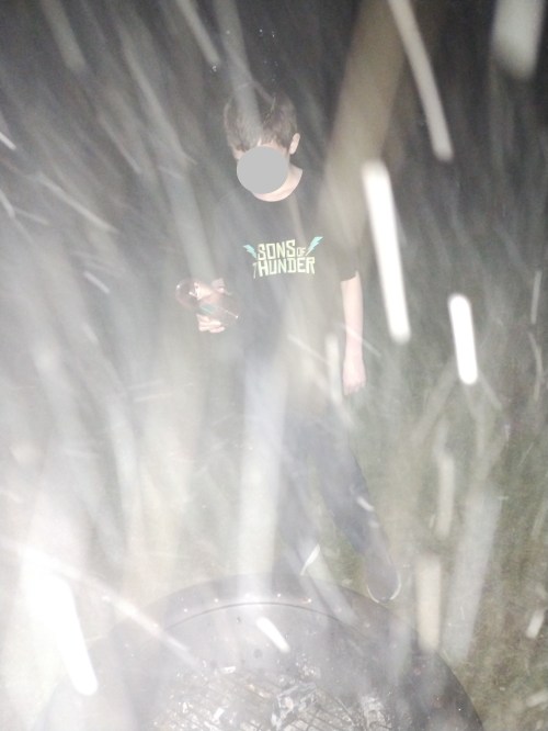 GRAMMY NOTES: Buzz is working on his Fire Ranger badge. The other day, he prepped a lean-to, a teepee, and a cabin with the wood, then lit the fire, maintained it, then properly spread it out to burn down before pouring water on the last embers. The flash caught the steam!
