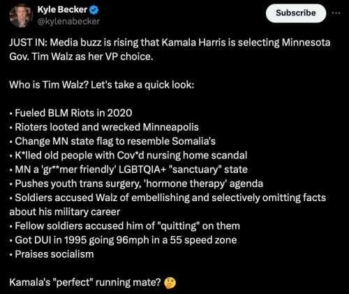 WALZ: Vice President Kamala Harris chose Minnesota Gov. Tim Walz as her running mate. This is the most radical ticket in American history.
