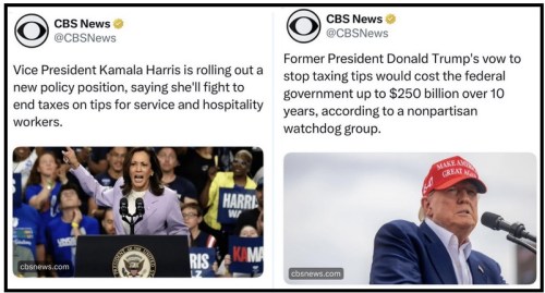 TAX ON TIPS: Kamala has been saying in her stump speech that she will eliminate the tax on tips for hospitality workers. Not only did she copy this from Trump, but also there’s not a snowball’s chance in hell she’d actually make good on it.