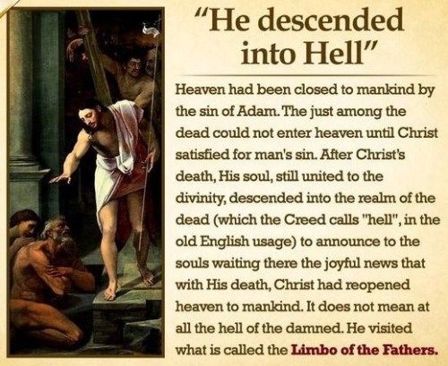 CATHOLIC: Personally, I prefer the translation “He descended to the dead.” I also like to think that He probably met with Joseph first. I also like to think that, on the first Easter morn, when the women came to the tomb and He wasn’t there, it was because He was having a cuppa with His mum.