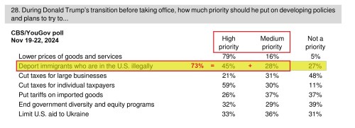 - https://notthebee.com/article/poll-73-of-americans-think-that-president-trump-should-make-mass-deportation-a-priority-of-his-administration-majority-believe-all-illegal-immigrants-should-be-deported