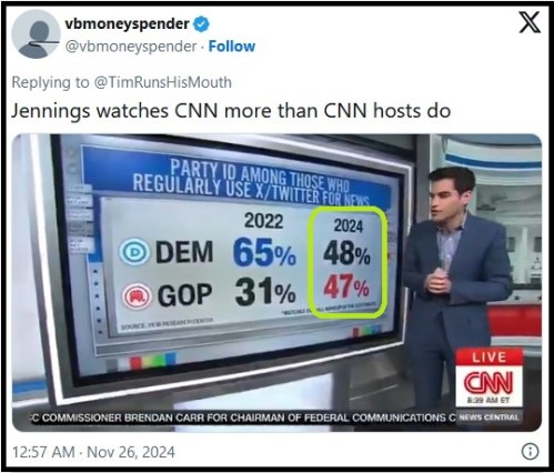 CNN: CLICK https://x.com/TimRunsHisMouth/status/1861283009124577653 [:19] to hear what inspired the tweet above. The report in the graphic aired the day before the tiff in the clip.