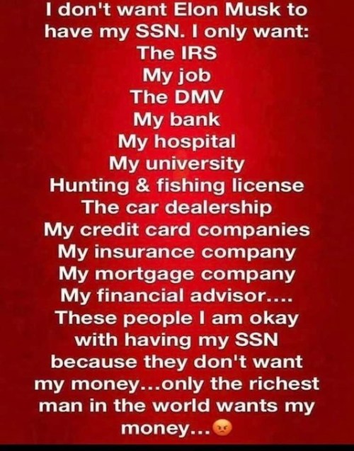 What I will share is what Elon Musk responded. “Bruh, if I wanted to rummage through random personal shit, I could have done that at PAYPAL. Hello??? Having tens of millions of people marked in Social Security as “ALIVE” when they are definitely dead is a HUGE problem. Obviously. Some of these people would have been alive before America existed as a country. Think about that for a second … “