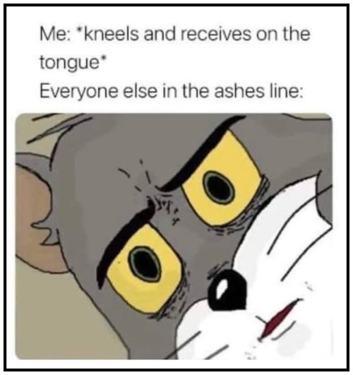 CATHOLIC: Reminder that Lent starts tomorrow. Going to church on Ash Wednesday is voluntary; fasting and abstinence are obligatory. (FYI: Catholics will get the joke. For the rest of y’alls … it’s a joke!)