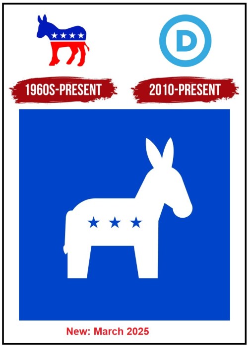 DEM LOGOS: They went from a red, white, and blue donkey with 4 stars to an elevator down button to an all white (racism??) donkey with 3 stars. It’s almost like they’re working for the GOP or something.
