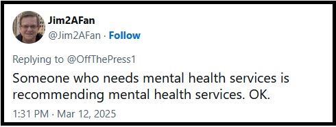 CLICK https://x.com/scarlett4kids/status/1899644541856088493 [:23] and https://x.com/scarlett4kids/status/1899646085410492786 [:39] to hear a “non-binary” speak against the bill. Best comments: “Why is she so afraid of her own female body, that she refers to herself as ‘non-binary’?” “Is she aware that physicians, who “see people’s bodies all day long”, offer patients a gown or sheet, AND are required to offer the patient a chaperone, AND document patient response?” “Why can’t the men in frocks share with the men in trousers – it’s just bodies after all.”