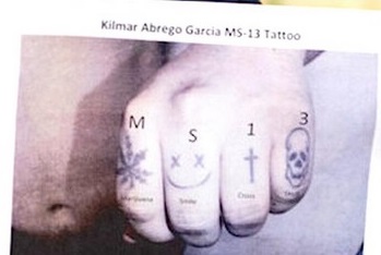 CLICK https://x.com/theblaze/status/1917379478554026167 [1:36] to hear about MS-13. ::smh:: The so-called “photoshopping” was just letters added to the photo to explain the meaning of the images. M for marijuana. S for smile. The cross and skull aren’t obviously 13, unless you understand that the number 13 is sacred in the MS-13 culture. A skull means death and danger; a cross means this is how they worship their god.