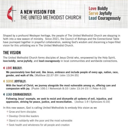 UNITED METHODIST CHURCH: On May 2, Dryden United Methodist Church posted the UMC’s new mission statement (graphic above). Note that it contains not one word about salvation, eternal life, or fidelity to the Holy Bible. Also on May, Dryden United Methodist Church, which was founded in May of 1831, announced it is closing permanently on June 30.