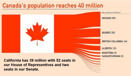 OH, CANADA: If this is at all serious, and I don’t know at all if it is, I am 100% opposed to adding all of Canada as the 51st state, because it would give Ontario (far left) and Quebec (demands French on everything) an insane amount of power in the House of Representatives. If we added Canada as ten new states, Ontario’s and Quebec’s House seats would still have a significant, left-leaning impact; however, the less populated provinces would at least some seats in the House and, very importantly, would each gain 2 seats in the Senate.