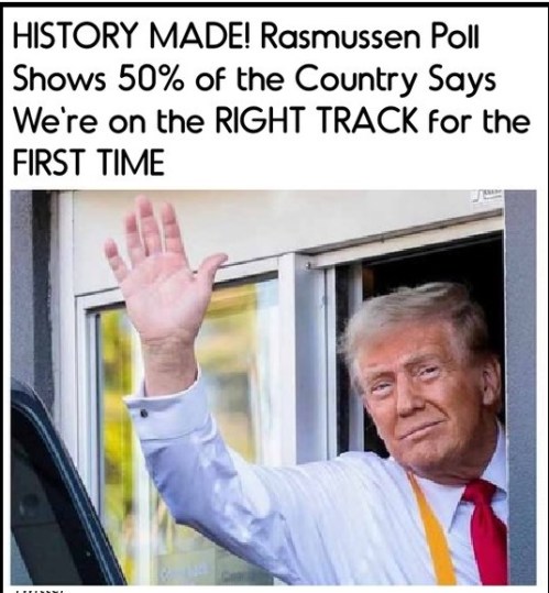 RIGHT TRACK: The current “right track” number is the highest in polling history. Rasmussen’s lead pollster, Mark Mitchell, says “right track, wrong track” is the best predictor of how Americans view the current administration, beating out things like presidential approval by a lot.