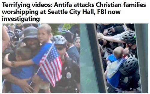 SEATTLE: I wish people would not bring children to events where the likelihood of violence is this high. See clips @ https://notthebee.com/article/wild-videos-antifa-attacks-christian-worship-event-at-seattle-city-hall.