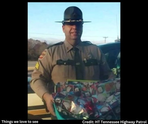 BACK THE BLUE: “I was pulled over Wednesday morning by a TN State Trooper. When he came up to the car he asked ‘Why are the two boys in the back seat not in car seats?’ My answer was the two little boys were my foster sons who I had just got the night before. I showed him paper work and explained to him that when I got them they had the clothes they were wearing and that is about it. No carseat, no toys, no coats, and so on. He was very nice to the kids and to me. He asked me for my phone number. I gave it to him. His wife called me and asked about the boys. This morning Officer Tidwell met me in Waverly, him and his wife had purchased gifts for the boys. Not just the two boys in the back seat but, their older brother too.