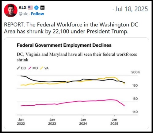 JOBS: Even better, the numbers in the graph above are from before the Supreme Court’s July 8 decision freeing Trump to execute the layoffs he wants. Remember when Biden’s “good” job numbers were made up of mostly illegals and government workers?