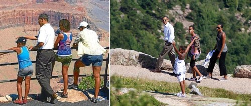 In August 2009, the Obama family went hiking and rafting in Yellowstone National Park, Wyoming, and Grand Canyon, Arizona. They said it was to promote conservation. In July 2010, they went to Bar Harbor, Maine, where they hiked in Acadia National Park and enjoyed local lobster dinners. Maybe that was to promote tourism?