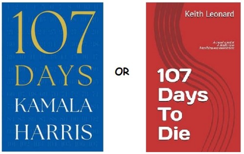 107 DAYS: I searched “107 days” at Amazon and learned I could blow $30 pre-ordering Harris’ book about how she was handed a vote-free presidential nomination and more than a billion dollars in campaign cash only to become the second woman to lose to the host of The Apprentice. Or I could save $16 and get a novel about a crazed scientist, a deadly virus, and a desperate race against time. Hmmmm …
