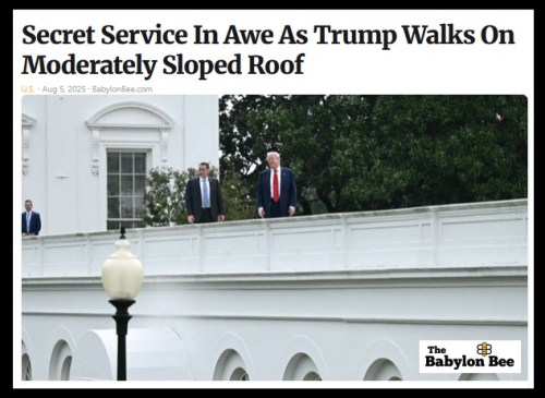 BABYLON BEE: “How is that even possible?!” one Secret Service agent was heard gasping. “I’ve heard stories about how President Trump can do things no other mortal man can do, but I don’t know if I really believed it… until now. He just… walked. On a moderately sloped roof. Just like it was nothing. We couldn’t believe our eyes.”