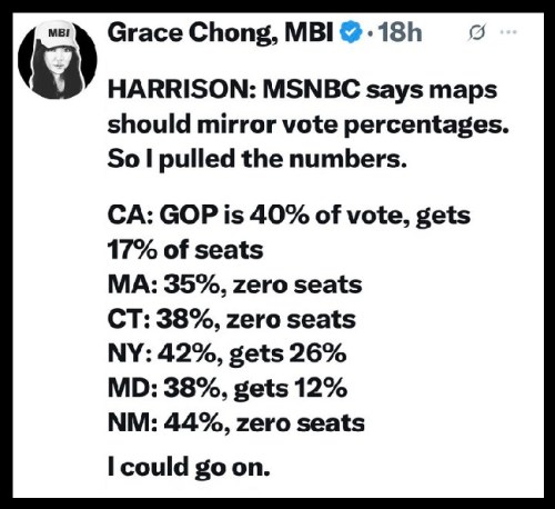 CLICK https://x.com/TheKevinDalton/status/1954319711199760881 [:49] to hear him tell supporters, “Fuck the rules! We are going to win whatever it takes.” Somebody should tell him that Democrat states are already as gerrymandered as they can get.