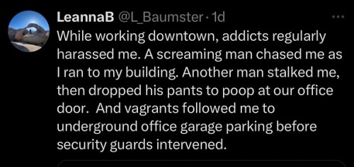 “My car was broken into. One friend had a car stolen from in front of his place, another was carjacked at gun point. I’ve had to assist someone who was shot while I was just trying to drunkenly make my way home from a bar. Fuck you. Thank god for the new enforcement.”